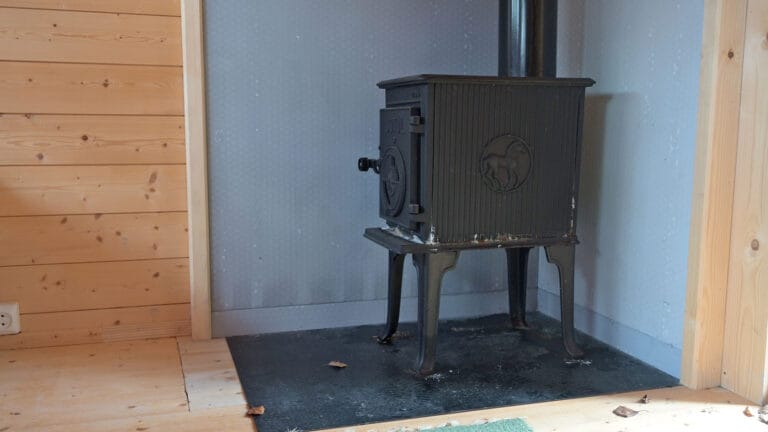 Brannplata i annekset har ingen produktdokumentasjon. Difor kan ingen vite om brannplata tilfredsstiller dagens krav. Fordi dette er usikkert og fordi pipeløpet har avvik, vurderer Ålhytta å nøye seg med elektrisk oppvarming i annekset.