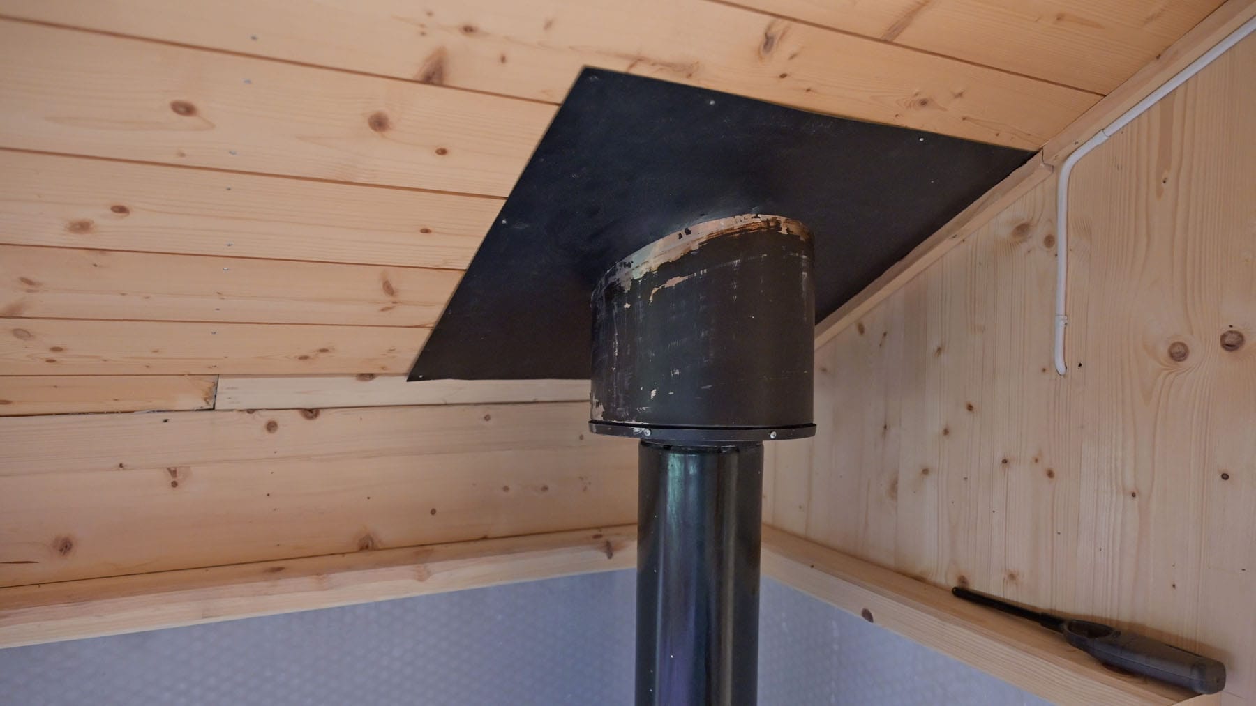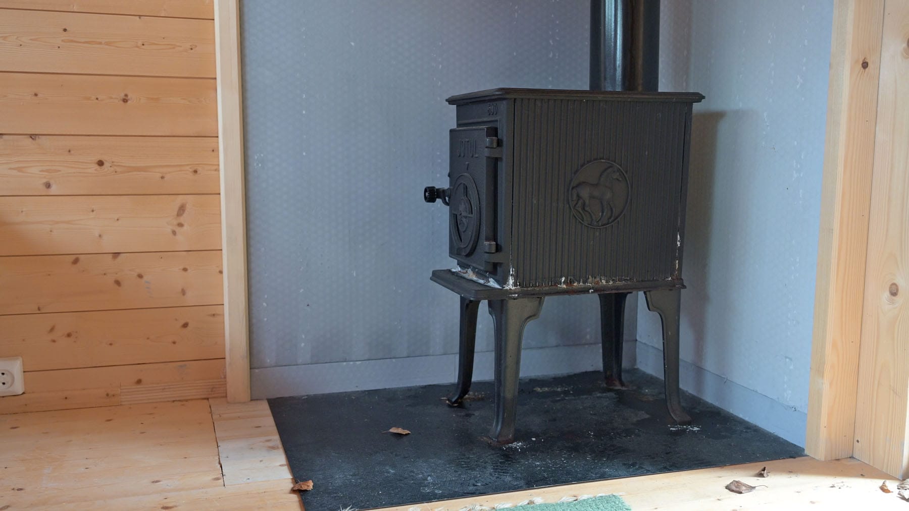 Kan ryke: Usikkert om brannplata bak omnen i annekset tilfredsstiller kravet. Selkirkpipa er ikkje lenger godkjent.